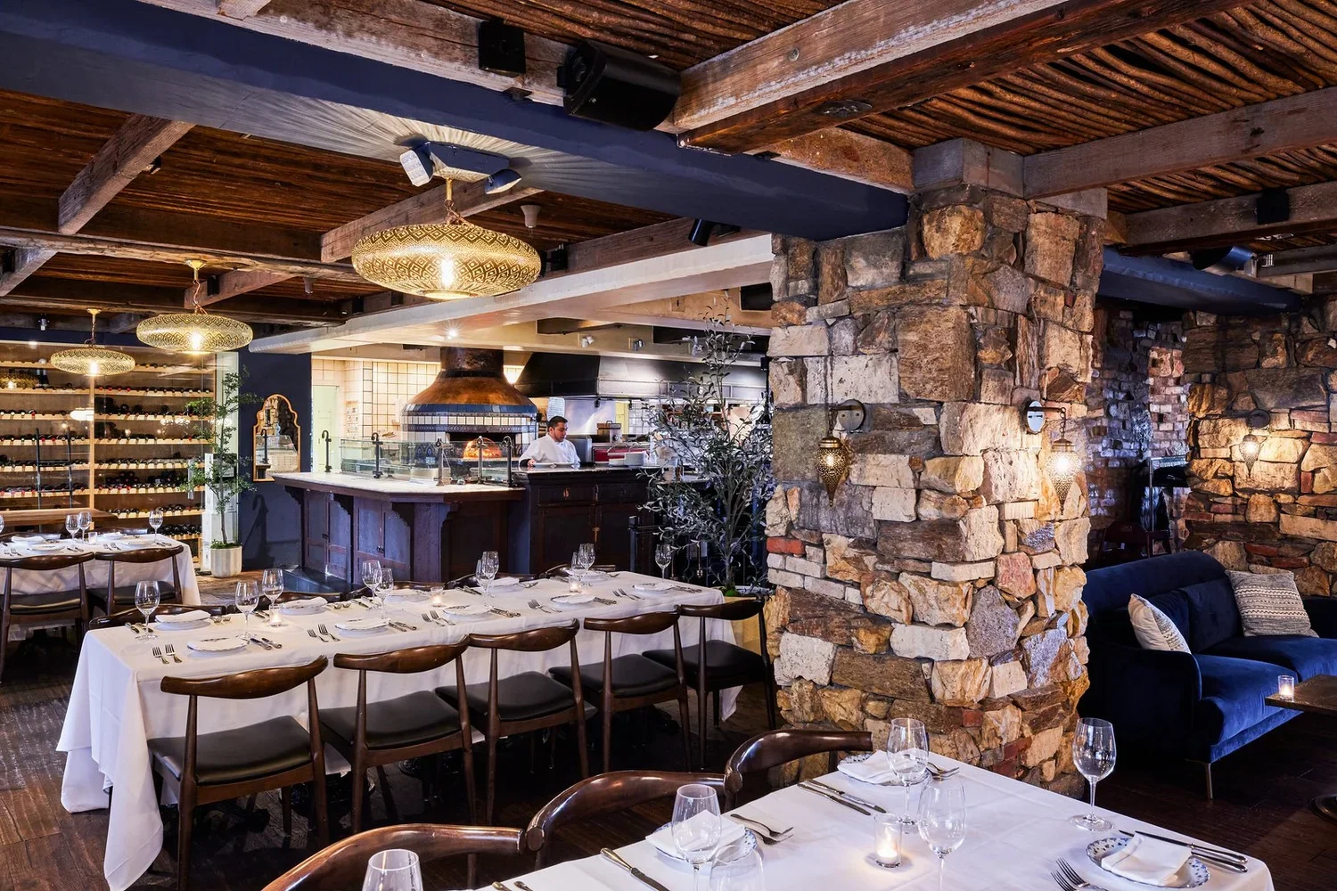 Our warm and inviting private wine room is perfect for an intimate dinner or cocktail reception. Guests can enjoy the view into the open kitchen.